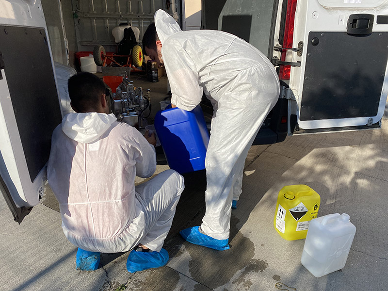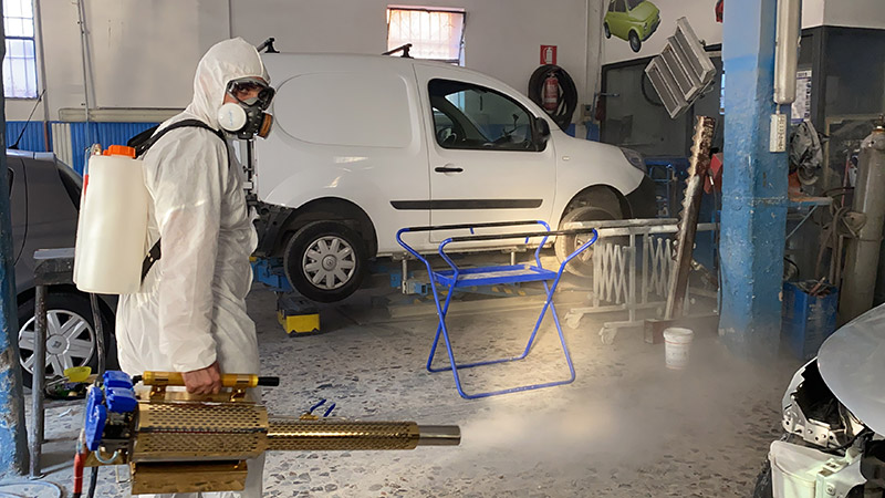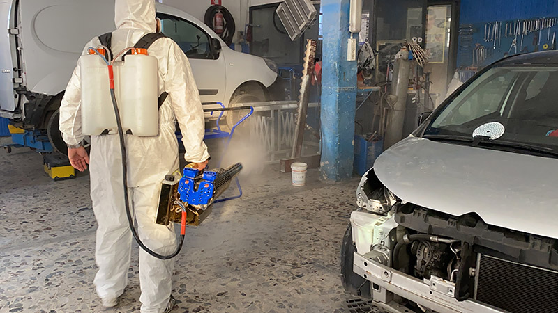 Con i nostri termo nebbiogeni siamo andati a saturare, con la nebbia generata da questi ultimi e dal perossido di idrogeno, la carrozzeria, arrivando su qualsiasi superficie.
