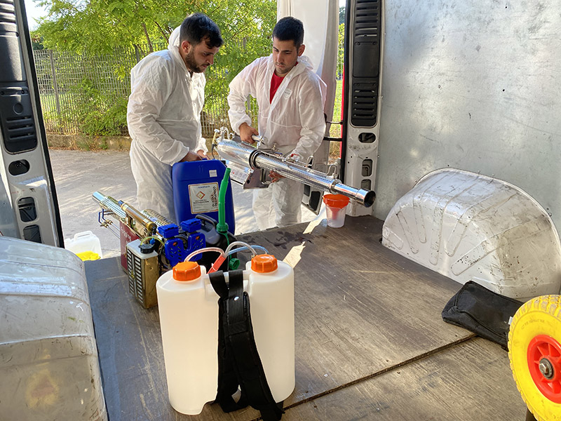 In questa agenzia, che si occupa di smistamento e trasporto di riviste e giornali per edicole, abbiamo sanificato gli uffici con il generatore di ozono, mentre i locali di resa con i termo nebbiogeni.